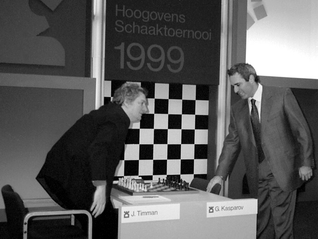 В 11-м туре я играл черными с Тимманом, который готовился по моей партии с Шировым из 7-го тура и припас сюрприз. Но я свернул в сторону, и тогда партнер сразу форсировал ничью, ход в ход повторив мою партию с Шировым из Линареса-1998. Из прессы: «Видимо, Тимман получил большое удовольствие от этой партии-шутки, потому что потом весь вечер пил пиво в пресс-центре и смеялся над тем, как провел Каспарова».