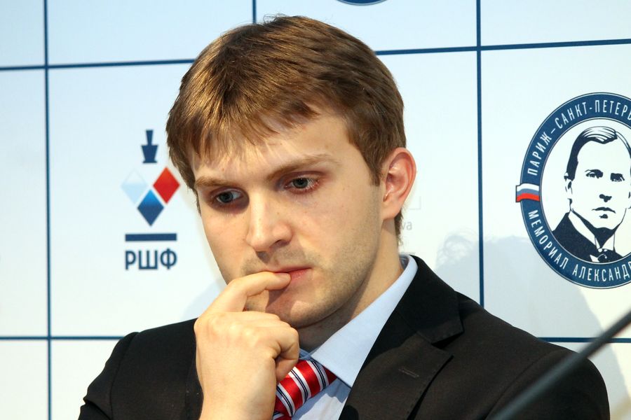 И Свидлер, и Крамник играли белыми. Земляки-питерцы остановили свой выбор на системе Винавера. Легко можно было предположить, что кто-нибудь наверняка сыграет на французской земле французскую защиту, и не случайно, наверное, этим шахматистом оказался Никита Витюгов – автор двух книг о своем любимом дебюте. Петр на 12-м ходу избрал очень редкое продолжение 12.Nxc3 (вместо основного 12.Qd3), однако застать соперника врасплох ему не удалось. Критический момент наступил на 25-м ходу: еще один темп – и белые стабилизировали позицию, добиваясь явного перевеса, однако черные ход в ход успели провести разгрузочную комбинацию, в результате которой баталия закончилась вечным шахом.