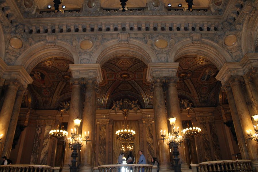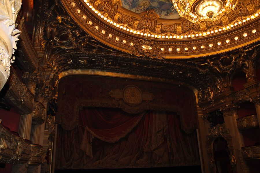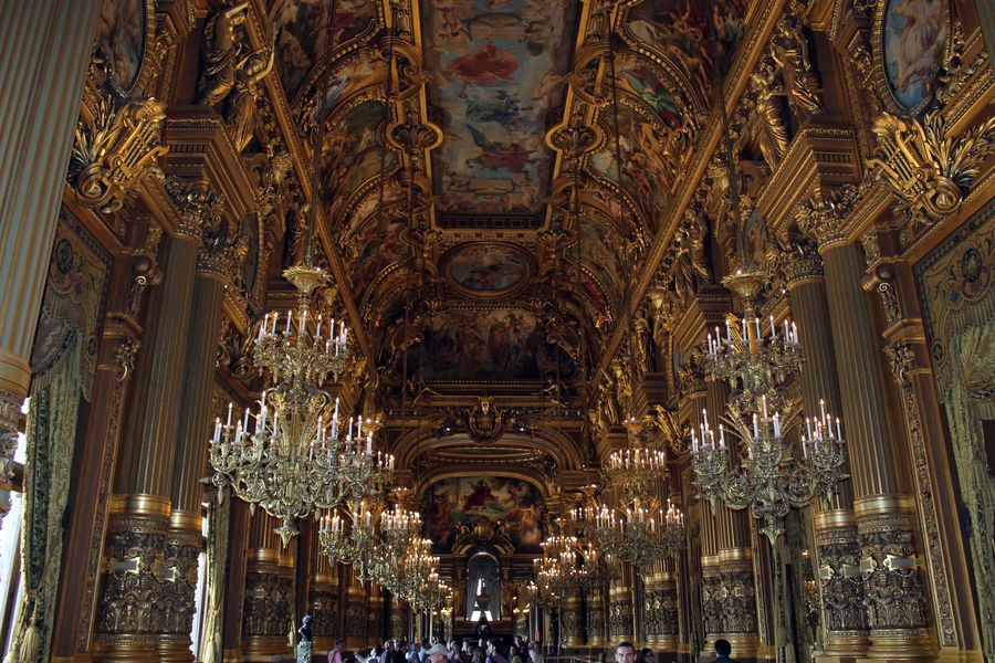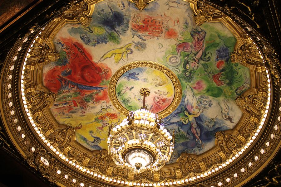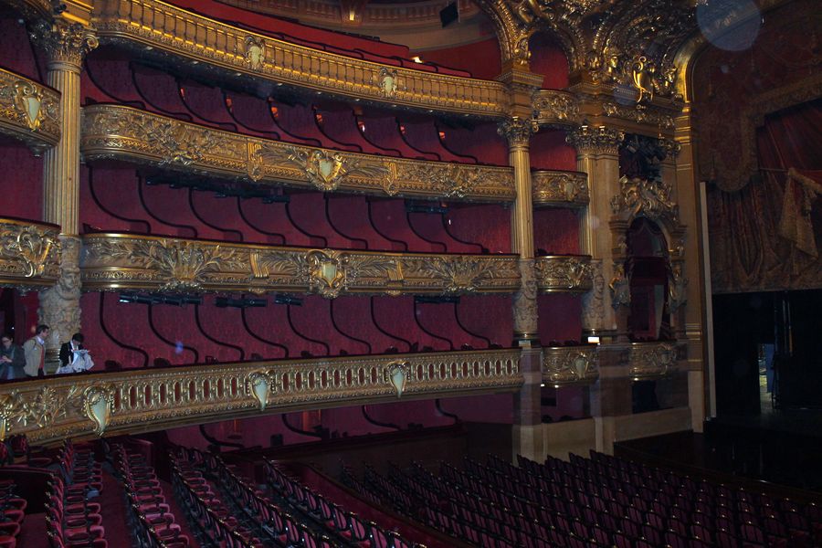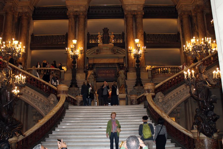 Внутри поражает своим великолепием парадная лестница, а также грандиозное фойе с многочисленными скульптурами и люстрами. Самая большая и самая красивая люстра, конечно, в зрительном зале; потолочный плафон над ней расписан кистью Марка Шагала. Пышный занавес из крашеной ткани сделан под сукно, украшенное золотыми басонами и помпонами. (Последняя фраза целиком выписана из рекламного буклетика; честно говоря, я не знаю, что такое басоны и помпоны, но музыка этих слов мне нравится.) Парижская опера – настоящий храм искусства, величественный и прекрасный!