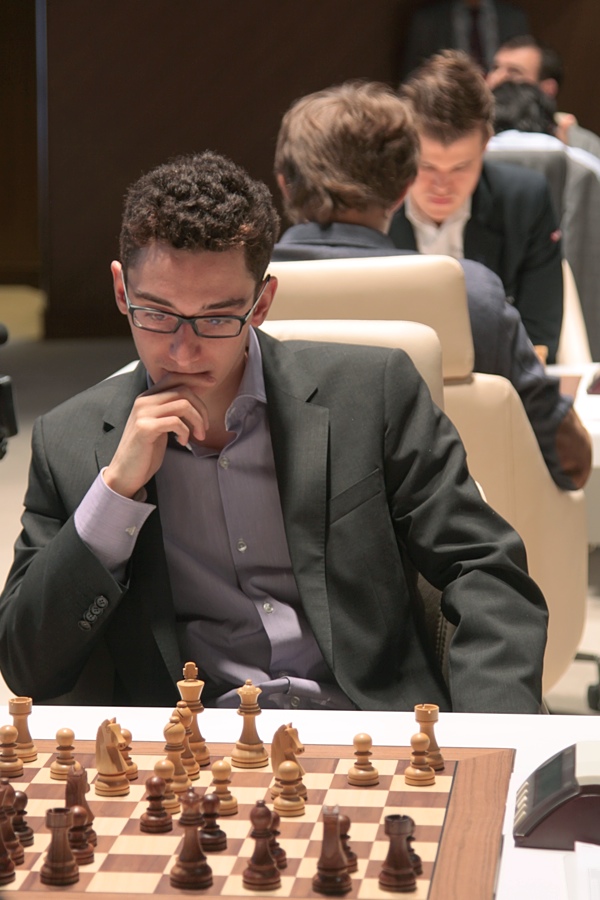 Раджабов против Каруаны снова применил староиндийскую, принесшую успех против Карлсена. Соперники долго следовали недавней партии ван Вели – Раппорт, затем черные применили логичную новинку, а белые пошли на жертву качества, также довольно логичную. Материальное соотношение вскоре трансформировалось в лишнюю пешку черных, при этом белые все время поддерживали инициативу, но позиция не выходила за рамки динамического равновесия. В цейтноте действия Теймура стали менее четкими, а контрольным ходом он допустил роковую ошибку, после которой Фабиано смог в полной мере использовать силу проходной пешки, дошедшей до предпоследней горизонтали.
