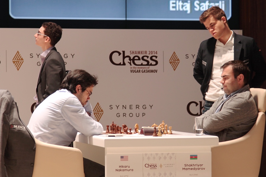 В дебюте Накамура благодаря предоставленной ему возможности вывести коня на с6 получил виды на контригру, которую Мамедьяров недооценил. После подрыва на ферзевом фланге и неизбежного вскрытия линии «b» белые оказались под угрозой атаки на короля. На 23-м ходу Хикару, пожалуй, стоило переключить регистры и забрать еще одну пешку, но он продолжил нагнетать угрозы по открытой линии, позволив Шахрияру пожертвовать качество. Положение обострилось, хотя материальный перевес все же обещал черным лучшие шансы. На 28-м ходу белые могли подрывом на королевском фланге существенно осложнить задачу соперника, однако вместо этого допустили размен чернопольных слонов в невыгодной для себя редакции, что привело к потере еще двух пешек и проигранному положению.