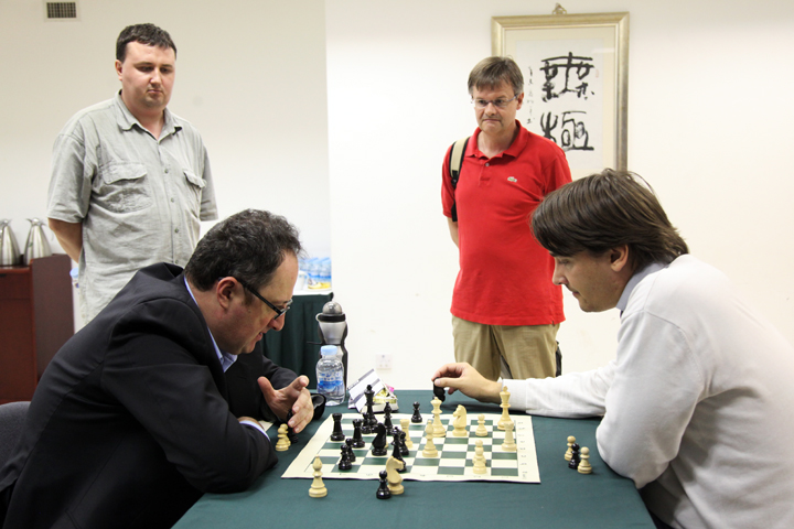 Морозевич с Гельфандом играли тот же вариант защиты Грюнфельда, который у Бориса встретился в первом туре другим цветом против Топалова. Черные получили хорошую игру, но затем неверно решили проблему защиты пункта f7. Намеченный белыми удар можно было и не допускать, однако решающую ошибку Гельфанд совершил на следующем ходу — жертву следовало принять сразу. После того как Морозевич забрал слоном еще и пешку g6, белые получили мощную атаку и уверенно довели ее до победы.