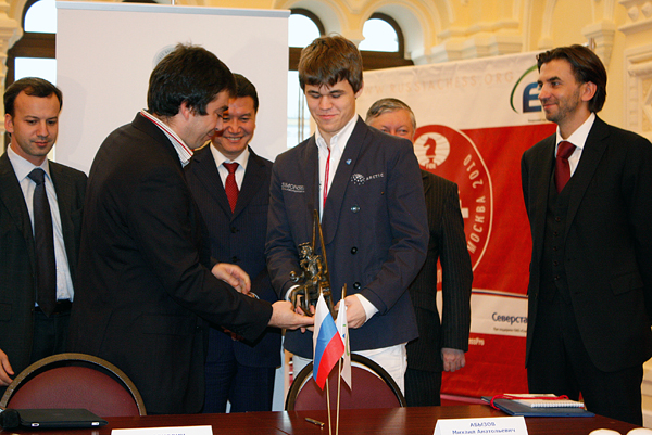 В этом году результаты голосования ежегодного конкурса журнала «64» стали известны позже, чем обычно. В 10-м номере сообщается, что обладателем почетного приза стал Магнус Карлсен. Норвежец стал первым шахматистом в российской истории "Оскара", завоевавшим этот трофей три раза подряд. Разрыв между ним и занявшим второе место Борисом Гельфандом оказался весьма существенным. Остальные места в десятке распределились следующим образом: 3. Аронян 4. Свидлер 5. Крамник 6. Грищук 7. Иванчук 8. Ананд 9. Морозевич 10. Накамура.