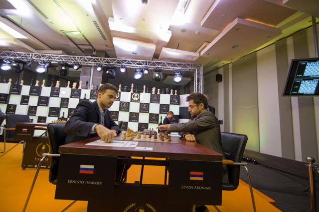 В плюс вышел в последний момент и Аронян. Левон применил новую идею в испанке, пойдя на выигрыш пешки ценой ослабления своего короля. Реакция Инаркиева была ошибочной – Эрнесто перешел в эндшпиль, в котором из-за лучшей пешечной структуры инициатива была целиком на стороне черных. Перевес Аронян реализовал с видимой легкостью, имея на часах в момент сдачи белых 1:58 – больше, чем в начале партии!
