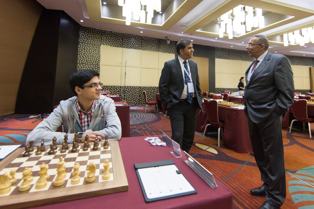 и к очевидной радости хозяев, представитель ОАЭ Салем, выигравший у Мовсесяна партию, очень похожую по рисунку на Бу Сянчжи – Перунович, с той разницей, что здесь черным удалась разгромная атака на короля.