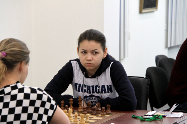 В поединке Грицаева – Боднарук черные в голландской защите уже на 4-м ходу избрали сомнительное продолжение, допустив сдвоение пешек. На выходе из дебюта белые добились очень удобной игры за счет разницы в силе слонов, но затем соблазнились жертвой фигуры за три пешки. Блицкрига не получилось, белый слон ушел с доски, черный стал заметно полезнее. В острой позиции Боднарук действовала точнее, отразила угрозы королю и перевела партию в технически выигранный эндшпиль. Дело плавно шло к победе черных, однако в конце чуть не случился конфуз. Сначала Анастасия без всякой необходимости разменяла своего слона на коня соперницы, а следующим ходом позволила белой проходной сделать шаг вперед (правильное продолжение 51…Ng6 тоже допускало 52.e7, но после 52…Nxe7 53.Rf7+ Kg6 54.Rxe7 Rc4 ладья отрезает белого короля на нужное число вертикалей), и при 52.e7 Nc4+ 53.Kc3 черные вдруг оказывались перед печальным выбором: ничейный ладейный эндшпиль в случае 53...Rxe7 54.Kxc4 Rd7 55.Rf4 Kg6 56.Rd4 или окончание «ладья и конь против ладьи» после 53...Nd6 54.Rd8 Nb5+ 55.Kd3 Rxe7 56.Rd5. Оксана упустила счастливый шанс и через два хода сдалась.