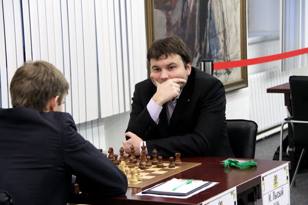 Лидером же после первого тура стал победитель высшей лиги Игорь Лысый. Витюгов несколько по-боковому разыграл дебют ферзевой пешки, но получил перспективную позицию. Затем он, однако, совершил неудачную сделку, отдав за ферзя ладью и пару легких фигур, и Игорь аккуратно довел партию до победы.
