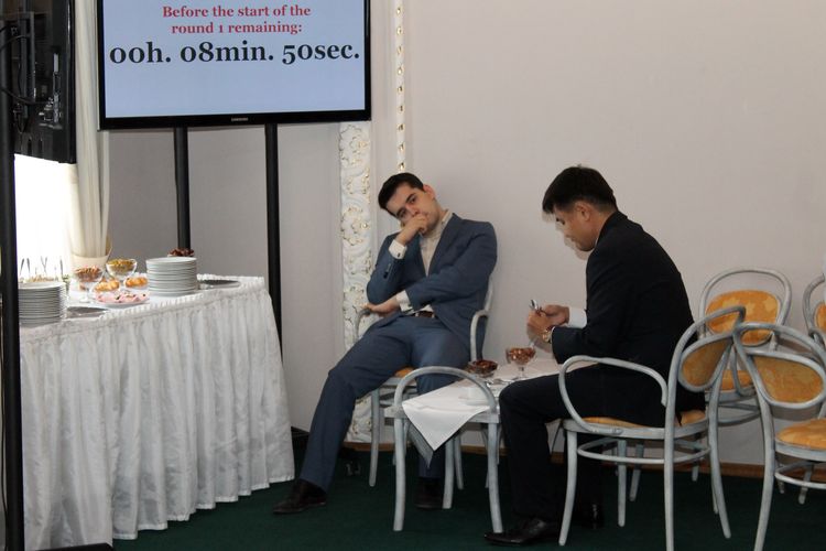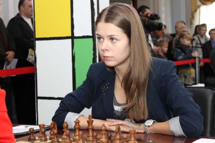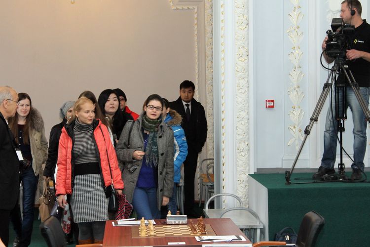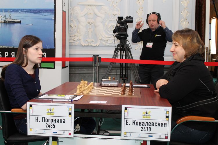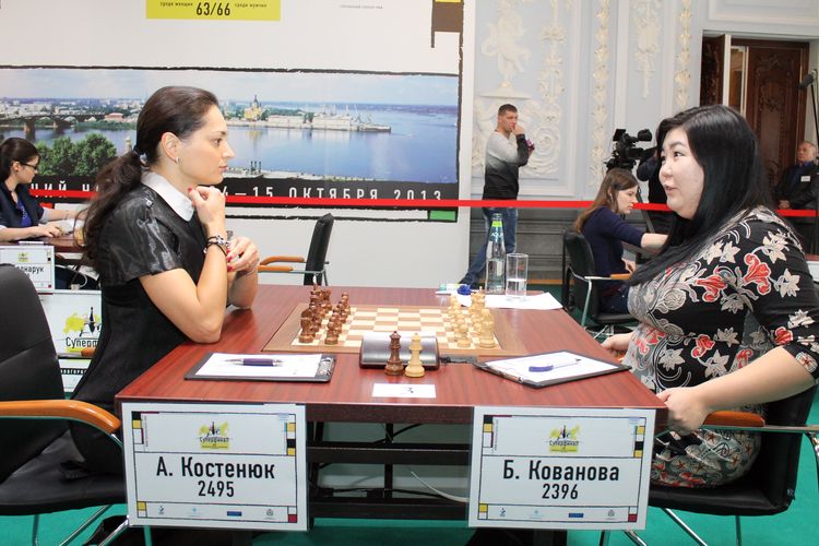 Если у мужчин после двух часов игры почти во всех партиях одна из сторон добилась явного перевеса, то у женщин борьба развивалась более ровно, очень долго оценка нигде далеко не отклонялась от нулевой отметки. Первой не выдержала напряжения борьбы экс-чемпионка мира Александра Костенюк, которая всего пару дней назад завершила труднейший турнир в Ташкенте. Александра допустила одноходовый зевок и сразу осталась без качества и пешки. После чего Баира Кованова уверенно довела партию до победы.