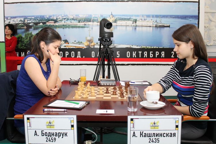 Спокойная русская партия, избранная Алиной Кашлинской, оказалась психологически неприятным выбором для активной Анастасии Боднарук. Питерская шахматистка всё пыталась завязать ближний бой, пожертвовала пешку, но компенсация оказалась недостаточной. Алина хладнокровно отразила все угрозы и форсировала переход в эндшпиль с одноцветными слонами, где реализовала лишнюю пешку.