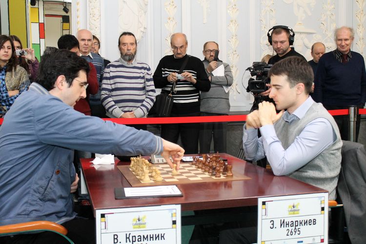 Владимир Крамник продолжает свои дебютные эксперименты. Партию против Эрнесто Инаркиева он начал ходом 1.е4, вероятно, чтобы поиграть свой фирменный «Берлин» за другой цвет. Эрнесто, подумав, избрал сицилианскую защиту, а тогда последовало 2.b3!?