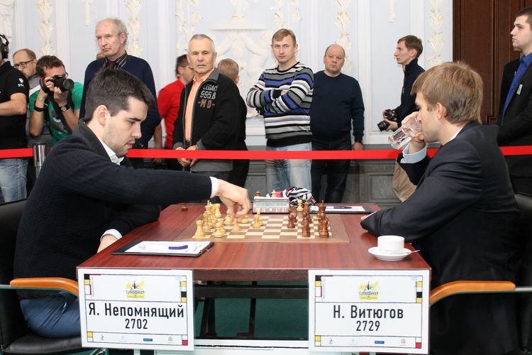 Очень напряженную партию, изобиловавшую сначала стратегическими, а потом чисто тактическими нюансами, провели Ян Непомнящий и Никита Витюгов. Сицилианская защита, система Паульсена, вариант с разносторонними рокировками. Компьютер считает, что позиция долгое время не отклонялась от отметки «0.0», но с практической точки зрения играть белыми было гораздо легче – сказывалась разница в положении королей. Белый устроился в бетонном бункере на b1, тогда как черный обзавелся, в лучшем случае, избушкой («peasant cottage», как было переведено для иностранных гостей название одной из картин в художественном музее). После первого же порыва ветра (е4-е5, f4-f5) избушка начала трещать и раскалываться. Вскоре черный король попал под прямую атаку, да и времени у Никиты почти не оставалось.