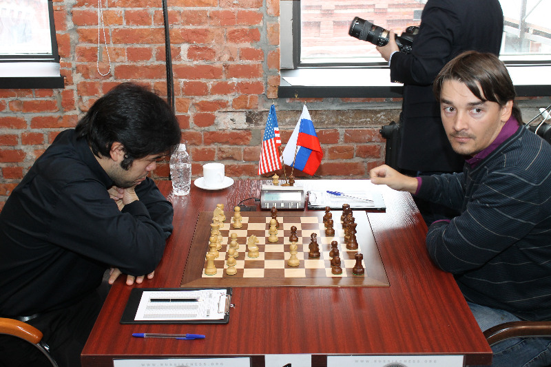 У Каруаны с Андрейкиным в улучшенной защите Стейница получилась позиция староиндийского типа, до 15-го хода соперники повторяли партию 1896 года Эм.Ласкер – Блэкберн. «Фишеровским» ходом коня Андрейкин вскрыл линии на королевском фланге и захватил инициативу, но до решительных действий дело не дошло. Сразу после прохождения контроля последовало соглашение на ничью.