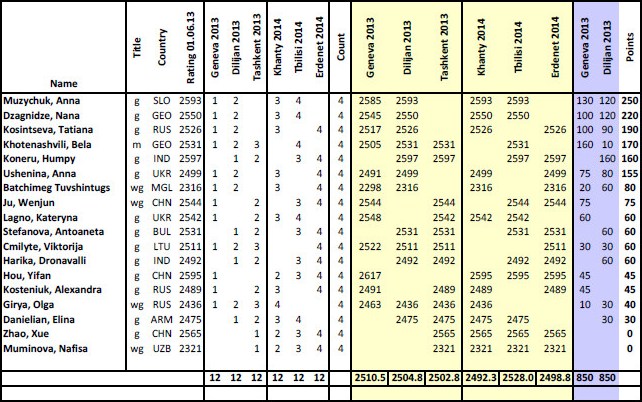 Можно было ожидать, что борьбу за первое место поведут наиболее стабильно выступающие в последнее время Хампи Конеру, Чжао Сюэ, Цзюй Вэньцзюнь и Екатерина Лагно. Не следует сбрасывать со счетов Белу Хотенашвили, но у шахматистки, занявшей первое место на первом этапе в Женеве и последнее на втором в Дилижане, очевидно, многое зависит от настроения. Вот и в Ташкенте она пока чередует победы с поражениями (впрочем, именно таким был ее стартовый график в Швейцарии).