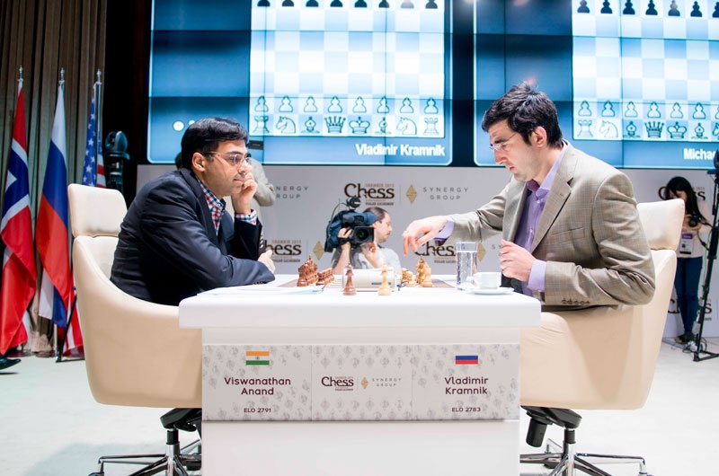 Встреча экс-чемпионов мира, несмотря на внешнюю остроту, стала проверкой дебютных познаний – в оживленном варианте славянки Крамник с Анандом до 30 хода следовали одной партии по переписке, что привело к ничейному разноцвету.