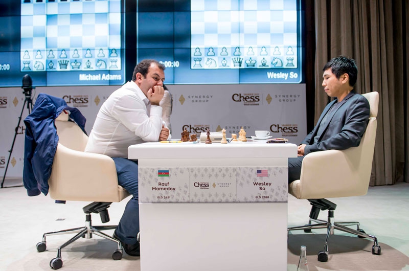 Этим воспользовался Со, образцово переигравший Мамедова в ускоренном драконе и ставший единоличным лидером. Воспользовавшись неточностью соперника в дебюте, Уэсли с темпом продвинул пешку на f5. Атаки на королевском не получилось, но она не была обязательной: Со инициировал выгодные размены, ведущие к тяжелому для черных эндшпилю, который технично довел до победы – см. онлайн гроссмейстера Красенкова.