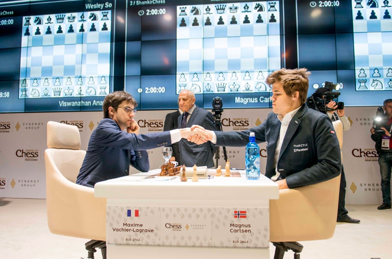 На опустевшую командную высоту «плюс три» поднялся чемпион мира, обыгравший Вашье-Лаграва. Француз экспериментальным образом поставил партию – уже на четвертом ходу началась более или менее самостоятельная игра, что наверняка порадовало Магнуса. Белые захватили центр, а вместе с ним и инициативу; затем Карлсен интересно пожертвовал пешку за ослабление королевского фланга и контроль над белыми полями. Активные действия Максима лишь ухудшили его положение, прояснив игру белых. Магнус отыграл пешку, разменяв ферзей, и изящно реализовал перевес в окончании.
