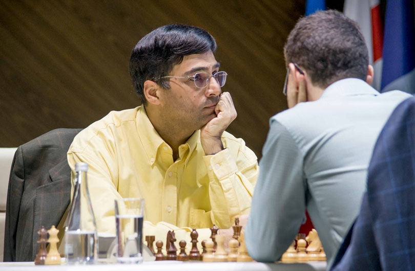 Каруана против Ананда разыграл дебют «по Шорту» - двойное фианкетто, ослабленные поля возле короля – но после размена ферзей у него стало чуть получше. Ананд уверенно сделал ничью, но гроссмейстер Красенков указал на усиление за белых на 25 ходу, после которого Виши пришлось бы сложнее – см. онлайн.