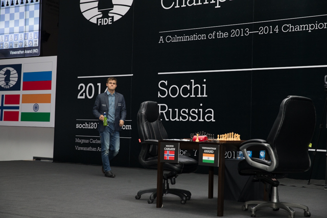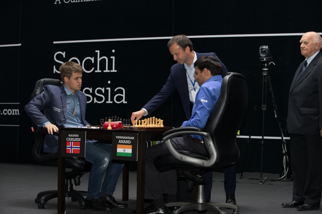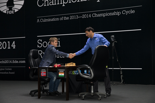 В сегодняшнем поединке на переходе из дебюта в миттельшпиль завязалась стычка в центре, из которой владевший инициативой Ананд вышел без пешки, но со слоном, превосходящим коня, и ладьей, вторгшейся на 7-ю горизонталь. Было ясно, что материальный перевес черных – явление временное, и казалось, что Карлсену предстоит долгая защита в неприятном эндшпиле, однако экс-чемпион избрал не самое опасное для соперника продолжение, и после того как с левой половины доски ушли все пешки, ничейный исход стал неизбежным.
