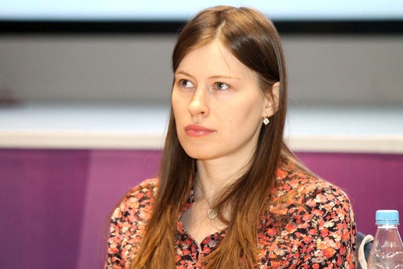 Погонина, избрав волжский гамбит, получила характерную для этого дебюта компенсацию за пешку. В районе 20-го хода Чжао Сюэ потеряла нить игры, что привело к ошибке на 23-м, которую черные, однако, не использовали – путем 23...exd4 24.Bxc4 Qb4 можно было выиграть качество. Вторжение коня на b6 стало большим достижением белых, но Чжао тут же еще раз ошиблась, отдав лишнюю пешку. Ничья оставалась наиболее вероятным исходом до 41-го хода, когда китаянка неверно выбрала поле для отступления короля. Наталья нанесла удар на темы отвлечения и вилки и за счет любопытного цугцванга обеспечила себе выигрыш пешки. Растерявшаяся соперница пренебрегла безопасностью короля и быстро попала под матовую атаку.