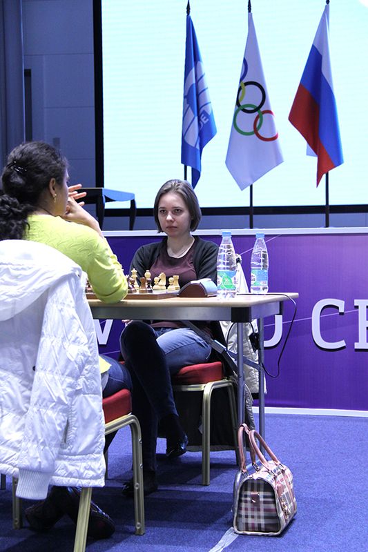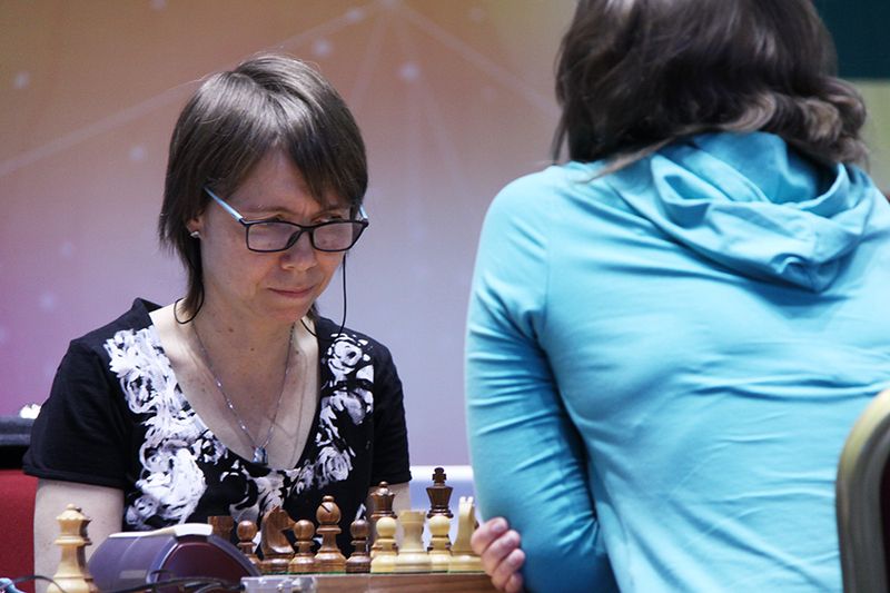 Мария Музычук в первой партии против Хампи Конеру не проявила должной заботы о центральной пешке, и та стала объектом атаки черных. Ценой немалых тактических ухищрений, заведя коня на а8, украинка свела игру к ладейному эндшпилю, ничейному, несмотря на нехватку пешки. Во второй партии Конеру энергично вела миттельшпиль и опять атаковала центральную пешку соперницы. После ошибки Музычук на 28-м ходу (ферзем следовало отступить на h6) проходная белых приобрела огромную мощь. Объективно лучшим, хотя и очень унылым выходом было отдать качество, но в этот момент Мария с запозданием пришла к идее выпада ладьей на е3. Самым практичным решением за белых было разменять ферзя на две ладьи путем 33.Bh3 Rxa3 34.bxa3, после чего пешка «d» стоила бы черным легкой фигуры. Хампи предпочла сохранить ферзя и через два хода подставила его под роковую коневую вилку (35.Rf1 вместо 35.Qc1?? вынудило бы черных все-таки забрать слона на d7).
