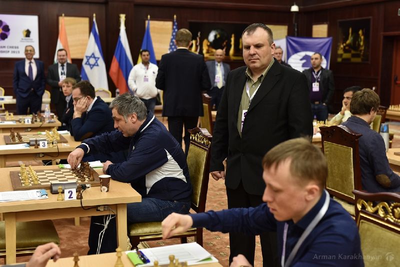 Армянская сборная не смогла переиграть венгров, несмотря на отсутствие Леко. Эрдош долгое время выдерживал давление Ароняна, но в конце концов класс и авторитет сказались. Алмаши не выказал больших амбиций, играя белыми с Саргиссяном. Раппорт выпадом ферзя на h4 на пятом ходу сумел превратить защиту Берда в атаку Маршалла, и Акопян, столкнувшись с неожиданностью, дебютного перевеса не получил. Более того, на 18-м ходу ему пришлось найти единственное продолжение, отбивающее лихой наскок черных, после чего шансы сторон были равны до конца партии. Балог, играя белыми с Мелкумяном, действовал вторым номером, непритязательно маневрируя у себя в тылу. Однако, переоценив силу своей позиции, черные неосторожно продвинули пешку «с», после чего их инициатива на королевском фланге выдохлась, а переключиться на защиту они не успели.