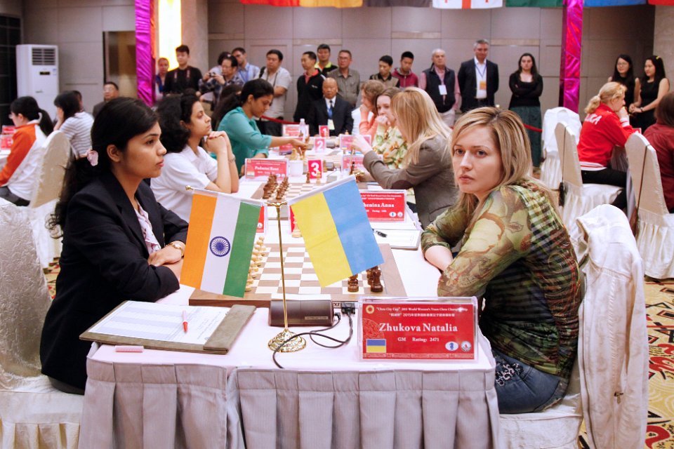 Украинская сборная во встрече с Индией, похоже, решила сделать ставку на последние доски и чуть было не потерпела вторую неудачу. А.Музычук отпустила с миром Конеру, сделав стандартную ничью в разменном варианте испанской. Бесконфликтным выдался и поединок Харики с М.Музычук. Но после того, как Ушенина, дважды по ходу игры отклонив возможность повторения ходов, перед самым контролем зевнула Падмини фигуру в безобидном эндшпиле, Жуковой для спасения матча пришлось выигрывать очень непростую партию у Сумьи.