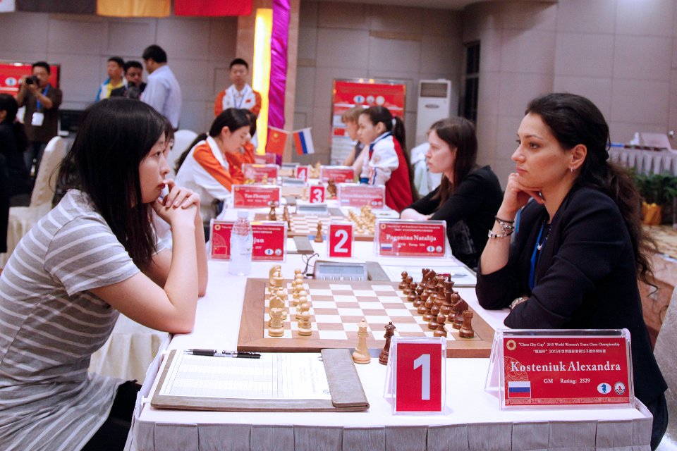 Россиянки отлично провели очень важный поединок со сборной Китая и выиграли со счетом 3:1. Костенюк в дебюте приняла предложенную Цзюй Вэньцзюнь жертву пешки, после ошибки соперницы на 17-м ходу приумножила материальные завоевания, а черный король нашел надежное убежище на ферзевом фланге. В проигранном окончании китаянка пошла на ошибочную тактическую операцию и очень быстро осталась без фигуры. Забрала пожертвованный материал и Погонина, игравшая с Тань Чжунъи, и затем всю партию владела преимуществом, но пройдя мимо нескольких перспективных продолжений при ферзях на доске, не смогла его реализовать в разноцвете при ладьях. Впрочем, к тому моменту судьба матча уже была решена. В партии Гиря – Лэй Тинцзе белые вышли из интересных комбинационных осложнений в миттельшпиле с качеством за две пешки. В возникшем окончании китаянка поначалу имела отличную компенсацию, но действовала недостаточно активно, а перед контролем не озаботилась тем, чтобы разменять единственную белую пешку ферзевого фланга, и та в итоге принесла Ольге победу. У Шень Ян и Горячкиной вязкая борьба в многофигурном окончании не дала перевеса ни одной из сторон.