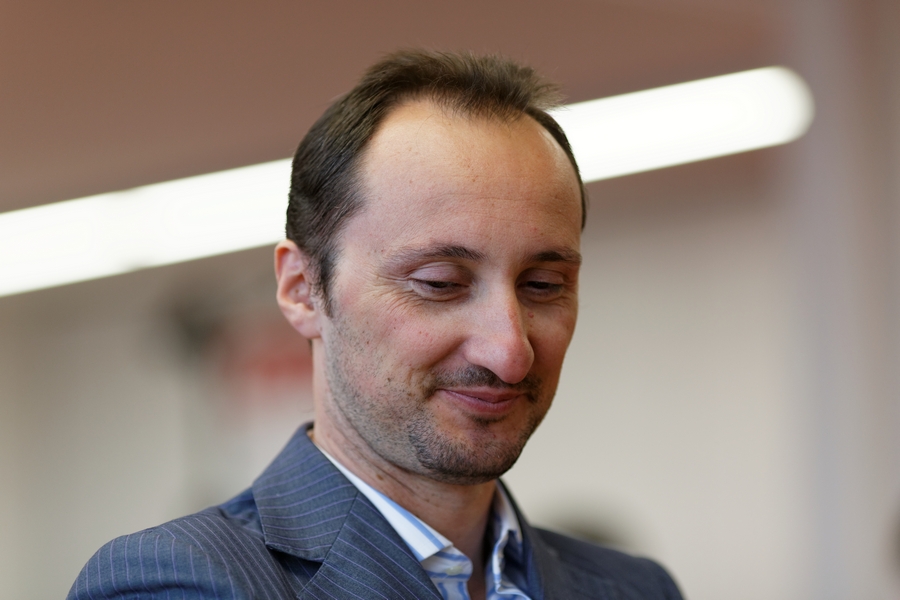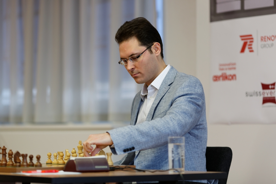 В партии Леко – Касымжанов после долгих «испанских» маневров, когда казалось, что вот-вот случится какое-нибудь троекратное повторение, на королевском фланге вдруг разразилась комбинационная вспышка. Черные на короткий миг остались без ладьи, но белые были вынуждены отдать ферзя за вторую ладью, и Касымжанов форсировал ничью вечным шахом.