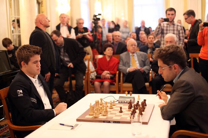 На 22...f5 белые заготовили 23.Nd6! с преимуществом, так как нельзя 23...Bxf3?? 24.Qa2+. «Ловушка дешевая, но красивая», - под смех собравшихся охарактеризовал Карлсен.