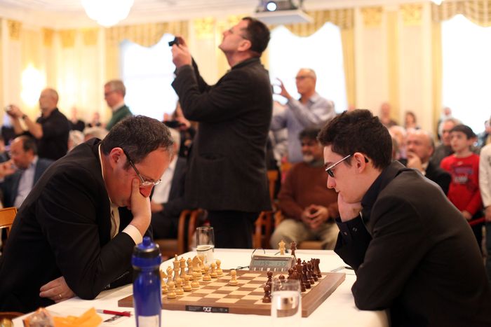 Неровно протекала партия Гельфанд - Каруана. Белые ничего не получили в голландской защите, в возникшем равном окончании играли неточно, а ошибка на 24-м ходу могла стоить Гельфанду пешки. Однако настал черед Каруаны промахиваться, он не использовал подвернувшуюся возможность и затем довольно быстро превратил лучшую позицию в неприятный коневой эндшпиль (занятно, что, как и накануне в партии с Накамурой, пропустил белого короля на слабое поле с5). Все же черным удалось спастись, хотя Гельфанд мог поставить перед соперником чуть более трудные проблемы.