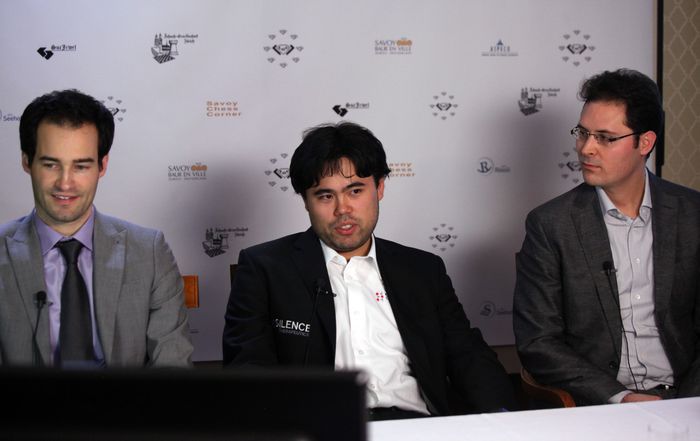 Ничья в противостоянии восьмисотников привела к образованию трио лидеров: Карлсена и Ароняна догнал Накамура, обыгравший черными Ананда.
