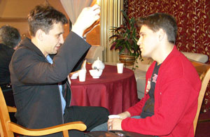 Скорее всего, такой разговор состоится в будущем, но не сейчас. На этот раз Владислав, воодушевленный своей победой и состоявшимся чуть ранее разговором с «chemodan’ом» (о предмете узнаете довольно скоро), взял инициативу в свои руки – и активно «спихивал» беседу (почти монолог) на любимую тему молниеносной игры. Если позабыли – напомню: десять лет назад, в 1995 году, Влад (которому тогда было 22!) вместе с братом Евгением организовали в родной для них Алма-Ате турнир по «суперблицу» (каждому сопернику давалось на партию по 2 минуты). Участвовали в нем ни много ни мало Анатолий Карпов, Юдит Полгар, Валерий Салов и сам Ткачев. Турнир тот прошел с блеском, братья вынашивали уже идею провести целый цикл подобных соревнований, но по не зависящим от них обстоятельствам проект рухнул, а сами Ткачевы в скором времени уехали из Казахстана.