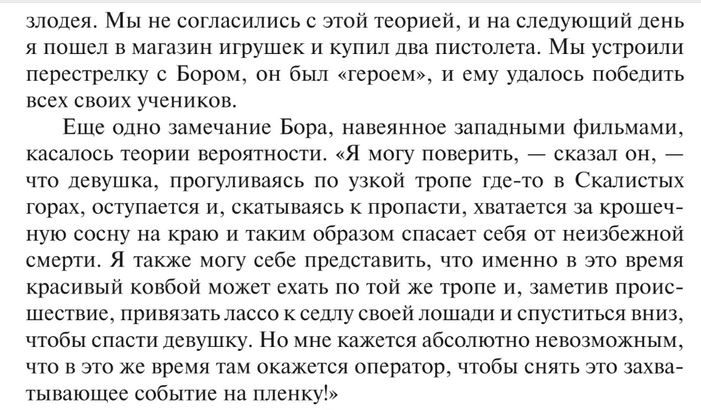 Читаю книжку Гамова о физике первых 30 годов прошлого века. В этом году её перевели на русский и совместили с другой книжкой Гамова про бесконечность (Т. была от неё в восторге), так сказать, две в одной. Показываю некий отрывок про Бора из гуглбукс ниже