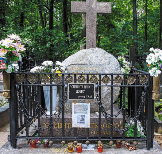 Ограду могильную увенчали те самые кандалы, а на надгробном камне вместо эпитафии начертали призыв апостола Павла: "Спешите делать добро!"