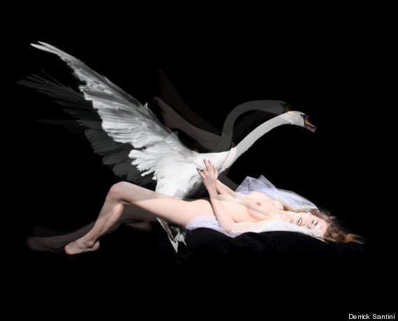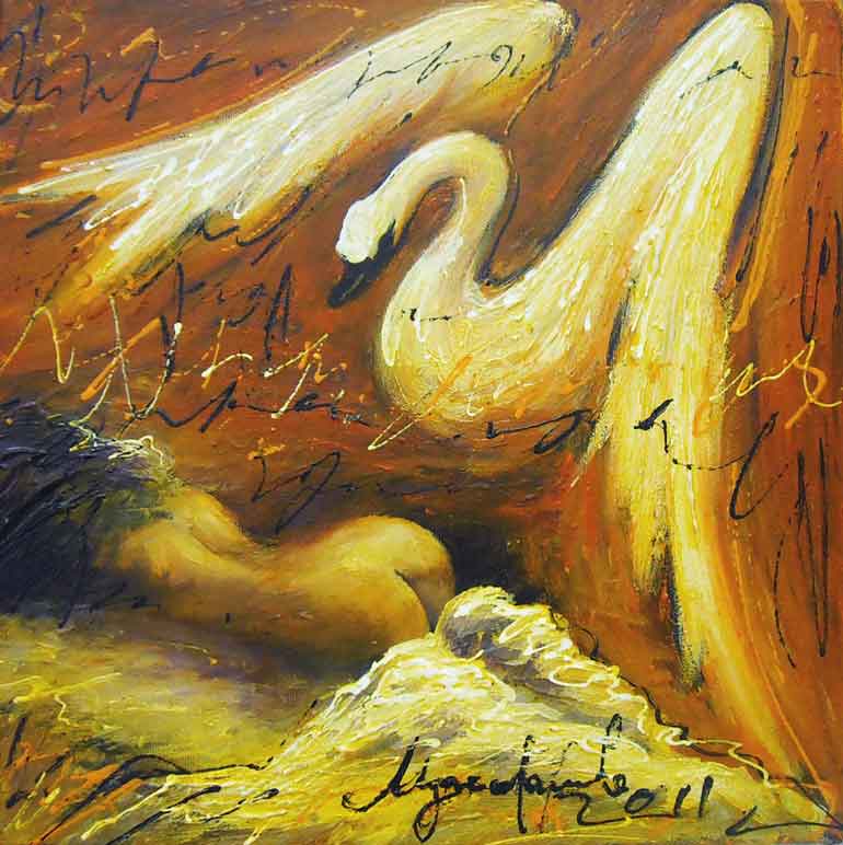 Вверху: Главный греческий бог Зевс, обратившийся в лебедя, чтобы соблазнить Леду, царицу Спарты.
