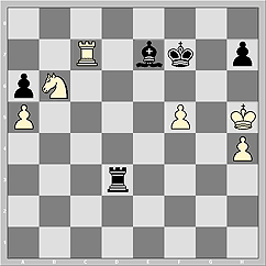 49...Rd4 50.Rc4 Rxc4 51.Nxc4 Kf6 52.Kg4 h5+ 53.Kf4 Bb4 54.Ke4 Be1 55.Ne3 Bxh4 56.Nd5+ Kf7. Ничья.