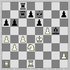16...Bc5 17.Bg5 Ng4 18.Bxb7 Qxb7 19.Qf3 Qxf3 20.exf3 Ne5 21.Kg2 f6 22.Bf4 Kf7 23.Ne2 Ke7 24.a4 Rfc8 25.b3 Ra7 26.Bxe5 fxe5 27.f4 exf4 28.Nxf4 Ba3 29.Ra1 Bd6 30.Nd3 Bc5 31.f4 Bd4 32.Rac1 Bf6 33.Kf3 g5 34.Ke4 gxf4 35.gxf4 Rac7 36.f5 Bg5 37.Ra1.