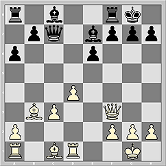 1.d4 Nf6 2.c4 e6 3.Nc3 Bb4 4.Qc2 d5 5.a3 Bxc3+ 6.Qxc3 Ne4 7.Qc2 c5 8.dxc5 Nc6 9.cxd5 exd5 10.Nf3 Qa5+ 11.Bd2 Nxd2 12.Qxd2 Qxc5 13.e3 0-0 14.Be2 Bg4 15.0-0 Rfd8 16.Rac1 Qb6 17.h3.