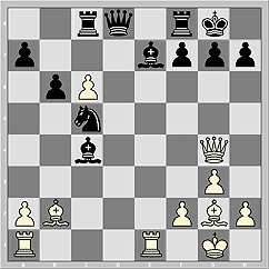 9.Ng5!? Bb7 10.Qf3 h6 11.Qh3 Qe7 12.Bd2 0-0 13.Nge4 Nxe4 14.Nxe4 c5 15.Nxd6 Qxd6 16.Bxb5 cxd4 17.0-0 d3!? 18.Bc3 Qd5 19.Qg4 Ne5 20.Bxe5 Qxe5 21.Bxd3 Qxb2 22.Rab1 Qc3 23.Rxb7 Qxd3 24.Qa4.