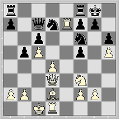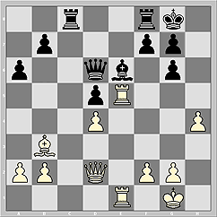 15.Bf4 Bd6 16.Bxd6 Qxd6 17.c4 Rb8 18.Rac1 Bd7 19.c5 Qc7 20.d5 exd5 21.Bxd5 h6 22.g3 a5 23.h4 Qc8 24.Rd4 Be6 25.a3 Bxd5 26.Rxd5 Rd8 27.Rxd8+ Qxd8 28.Rb1 Qc7 29.Rb5 a4 30.Qe4 Kh8 31.Qxa4 Qc6.