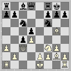Здесь интересные события развернулись только в начале партии. Леко в меране пошел по запасному пути 8...Bd6, Карпов отреагировал довольно свежей идеей Кожула 9.Ng5 вместо трафаретного 9.0-0. Заслуживает упоминания поединок из чемпионата Европы этого года Искусных - Хазнедароглу: 9...a6 10.Qf3 Bb7 11.0-0 Qc7 12.Qh3 e5 13.Bg6!, и белые легко выиграли.