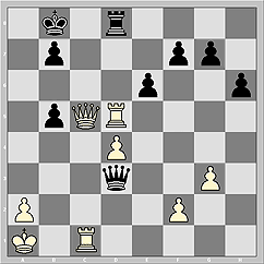 27. Qc4 Qe7 28. Qc5 Qg5 29. Re1 Qxh5 30. Re5 Qg6+ 31. Ka1 a6 32. b4 Qd3 33. b5