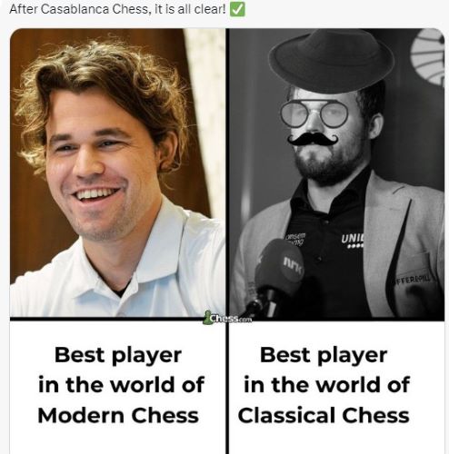 Магнус Карлсен: Мне очень приятно быть самым старым игроком. Раньше я был вторым по возрасту игроком на турнирах, а может быть, даже самым старым. Я знаю, что это будущее. Я надеюсь, что так и буду (самым старшим игроком в будущих турнирах), потому что это будет означать, что я продолжаю показывать хорошие результаты в течение долгого времени. Что касается индийцев, то уже много лет я ожидаю встретиться с индийцами на каждом супертурнире. Если вы посмотрите на молодежь, индийцы абсолютно доминируют. Кроме того, с точки зрения количества молодых игроков, им нет равных. Я глубоко впечатлен шахматной революцией, произошедшей в Индии. Все дети, с которыми я сталкиваюсь, тоже отличные дети. Я очень рад за индийские шахматы и буду стараться бороться с детьми столько, сколько смогу (улыбается).