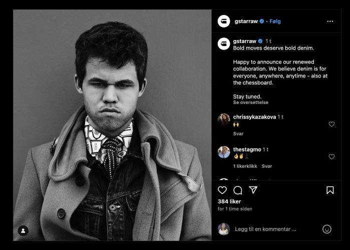Карлсен снова станет моделью джинсов, как сообщает G-Star RAW