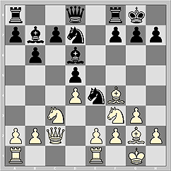 3. +/= (0.46): 11...Ndf6 12.Rac1 Bd6 13.Nxe4 Nxe4 14.Ne5 Qe8 15.Nd3 f6 16.f3 Ng5 17.Bxd6 Qe3+ 18.Kh1 cxd6 19.Qc7
