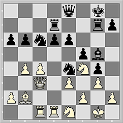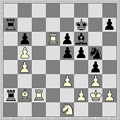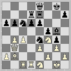 15. fxg3 Rxe3 16. Rf3 Bd4 17. Rxe3 Bxe3+ 18. Kh1 Ne5 19. Nf1 Bh6 20. e4 a6 21.