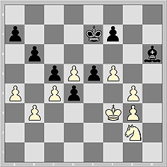 На мой взгляд, реализовать перевес Эльянову будет не просто. Две пешки у Топы за фигуру есть, плюс безприютный белый король. На вечный шах нарваться можно будет. |