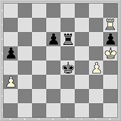 | На первый взгляд ничья... Конечные ходы Kxa3, Kc4! - белые успевают королем. |