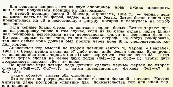 Vova17: В первой наверно дело было так. Конь отдался на h6, потом пешка g прошла в "кони" и вернулась на g1. Конь с ладьей могли поменяться местами позже. Зачем ходить королями или ладьями? Если нужно там какой темп потерять, то на это есть чернопольный слон черных и белопольный белых...