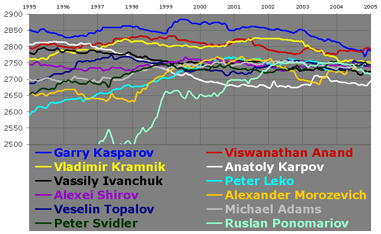 2789 in St. Petersburg, 1895, scoring 9.5/18 (53%) vs 2787-rated opposition